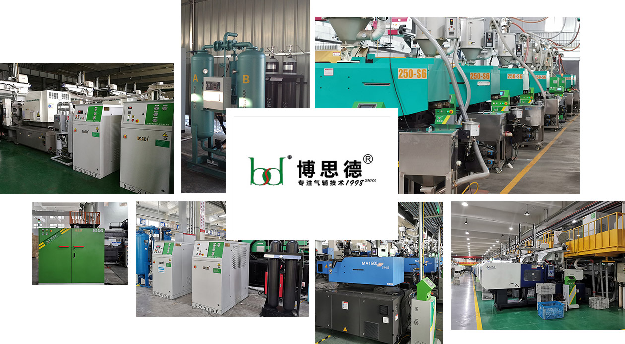 浙江博思德( BOSIDE) 機械有限公司 是專業從事氮氣輔助注塑成型設備的生產、銷售;氣輔注塑工藝及氣輔模具的研發、應用;高壓氣體設備的生產、銷售及國外品牌代理等業務。主要經營:氮氣發生器、高壓壓縮機、氮氣控制系統、氮氣模具制造、注塑成型生產等五大事業項目。我們有近二十年的氮氣輔助注塑成型(氣體輔助注塑成型)的生產及技術經驗。